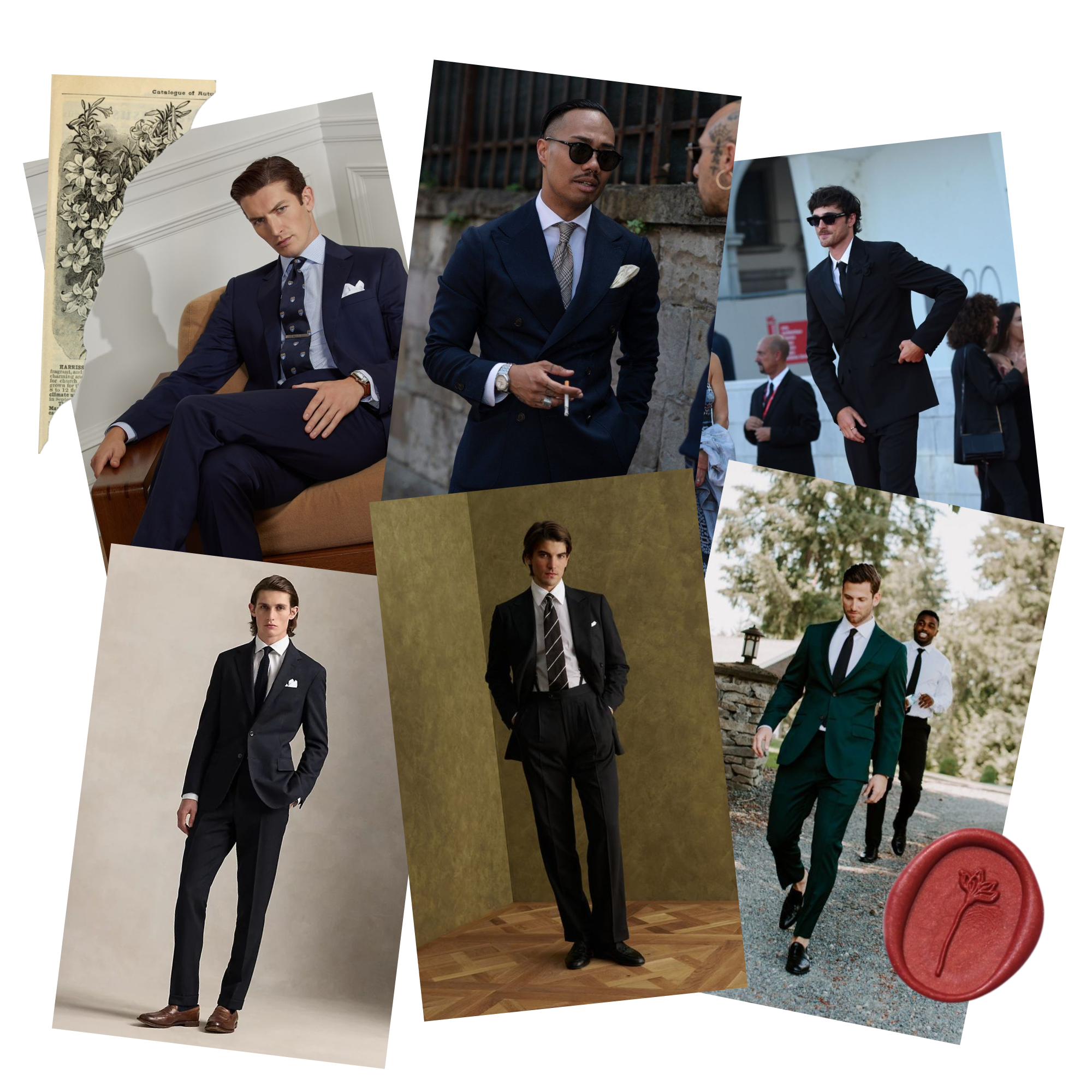 Opt for black or darker colored suits. Accessorize with dress shoes and a tie or bowtie.